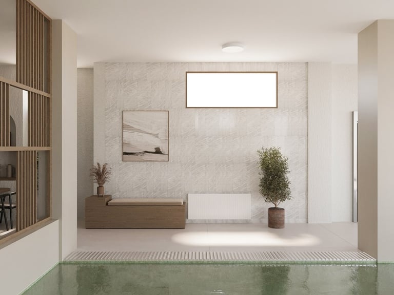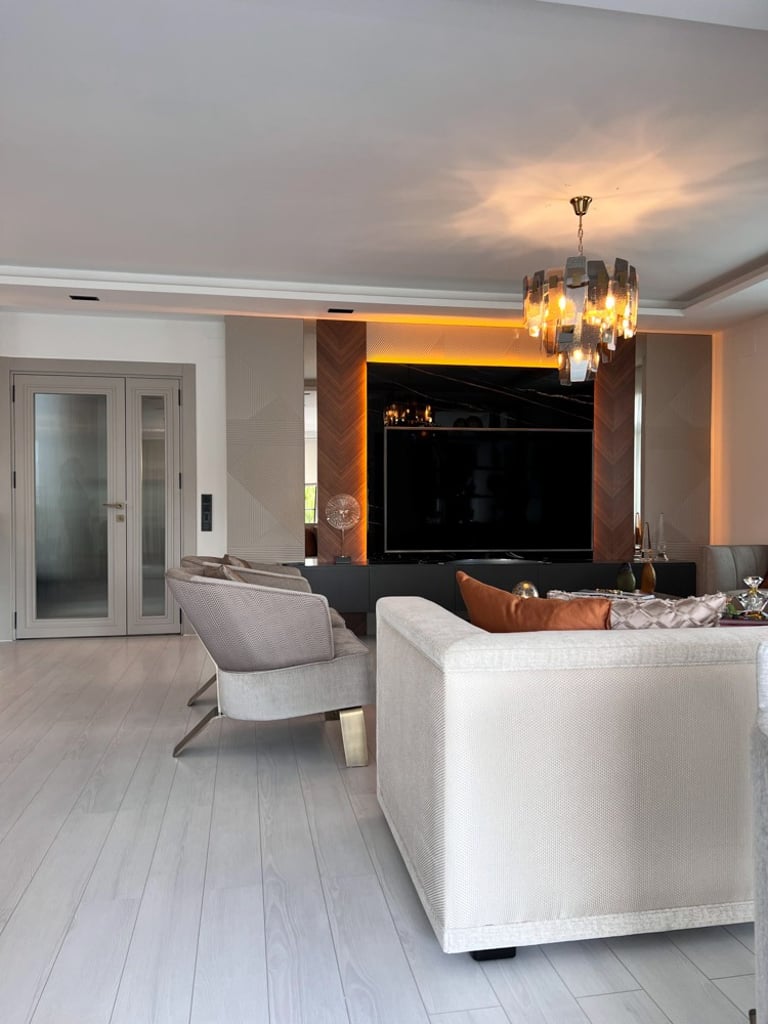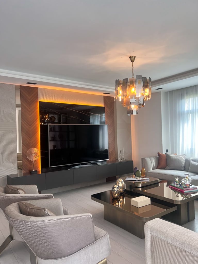 Ataköy Villa projemizde Antre ve salon alanı ruhsuz ve ev sahibinin taleplerini karşılamıyordu. Ahşap ve sıcak tonlar ile antre alanında hem sıcaklık hem de duvar tasarımı porselen dresuar tasarımımız ve üretimimiz ile tamamladık. Salon alanında ürün seçimlerini tamamladık ve konseptimize uygun dresuar ve tv ünitesi tasarımımız ile özel üretimler ile destekleyip dekorasyonu tamamladık. Bodrum kat tasarımında ise havuz alanı yıpranmıştı ve ortak bir alan algısı yoktu. Bu algıyı sağlamak için havuz alanı ile beraber yeniden bir mutfak alanı beraberinde bir yemek alanı ve duvar tasarımı ile tasarımı tamamladık.