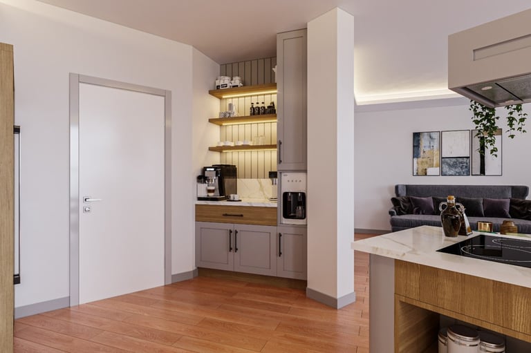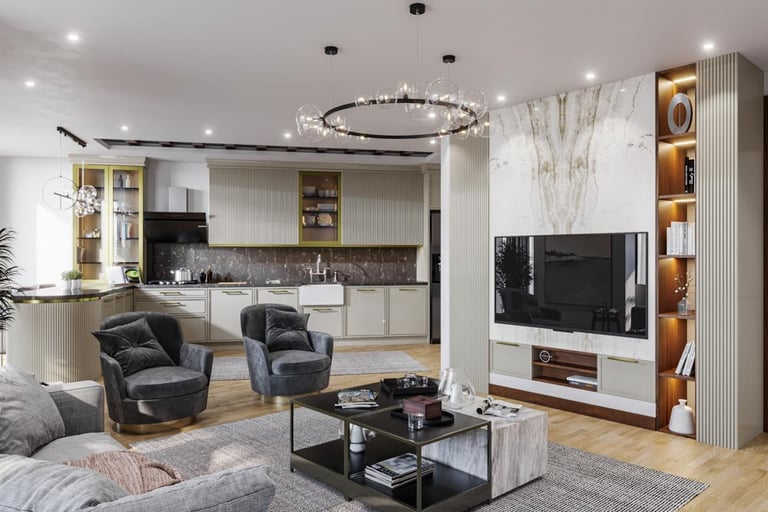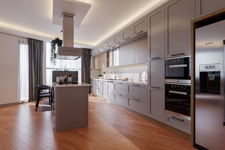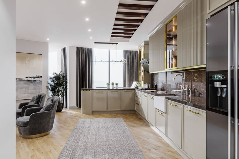 Klasik ve Modernin Ahengi. Adana'da yer alan S Evi, ailenin yaşam konforu ile misafir ağırlama lüksünü farklı katlarda bir araya getiren özel bir tasarımdır. Ayrı katlarda tasarlanan misafir alanı klasik ve şık çizgilerle bezenirken, evin günlük yaşam alanı modern ve konfor odaklı bir yaklaşımla şekillendirildi.Tüm mekânlar, ailenin ihtiyaçlarına özel olarak tasarlanıp üretildi. Mutfak, geniş adasıyla öne çıkarken, yaşam alanıyla açık konseptle birleşerek büyük ve işlevsel bir sosyal alan sunuyor. Balkonun da bu alana dahil edilmesiyle, ferah ve akışlı bir bütünlük yakalanıyor. Evdeki iki kız çocuğu için tasarlanan odalar ise çalışma ve oyun alanlarının ayrılmasıyla, hem düzenli hem de keyifli bir ortam sunuyor.